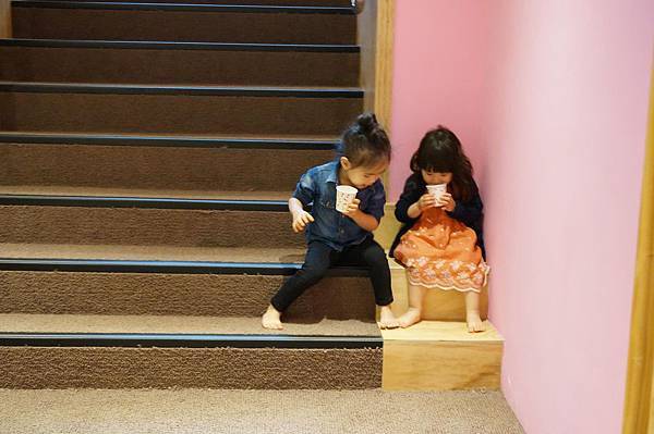 一到故事島很可惜剛好遇到一樓在包場辦活動,所以不能到上面玩玩具,大家擠在樓梯間等上課。